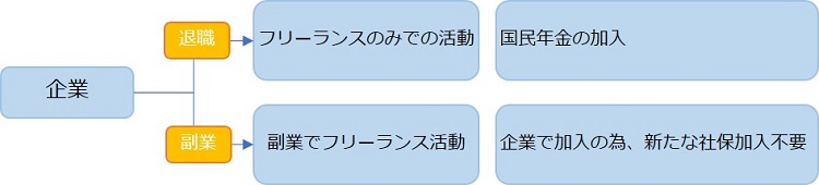 副業としてフリーランス活動を行う場合は、本業で雇われている企業で社会保険が加入されてますが、フリーランス一本で活動するためには、以下何れかの社会保険の加入が必要となります。